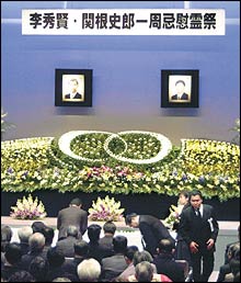 ▽합동위령제〓26일 오후 신주쿠(新宿) 페아레 신주쿠강당에서 열린 위령제에는 이씨의 부모 이성대(李盛大·62) 신윤찬(辛潤贊·51)씨와 후쿠다 야스오(福田康夫) 관방장관, 다나카 마키코(田中眞紀子) 외상, 나카타니 겐(中谷元) 방위청장관 등 일본 정관계 인사와 최상룡(崔相龍) 주일대사, 일반참배객 등 600여명이 참석했다.