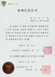 명예졸업장 수여식은 이날 오전 고려대 본관 3층 회의실에서 김정배 총장 주재로 열렸으며 이씨 부모가 대신 졸업장을 받았다.